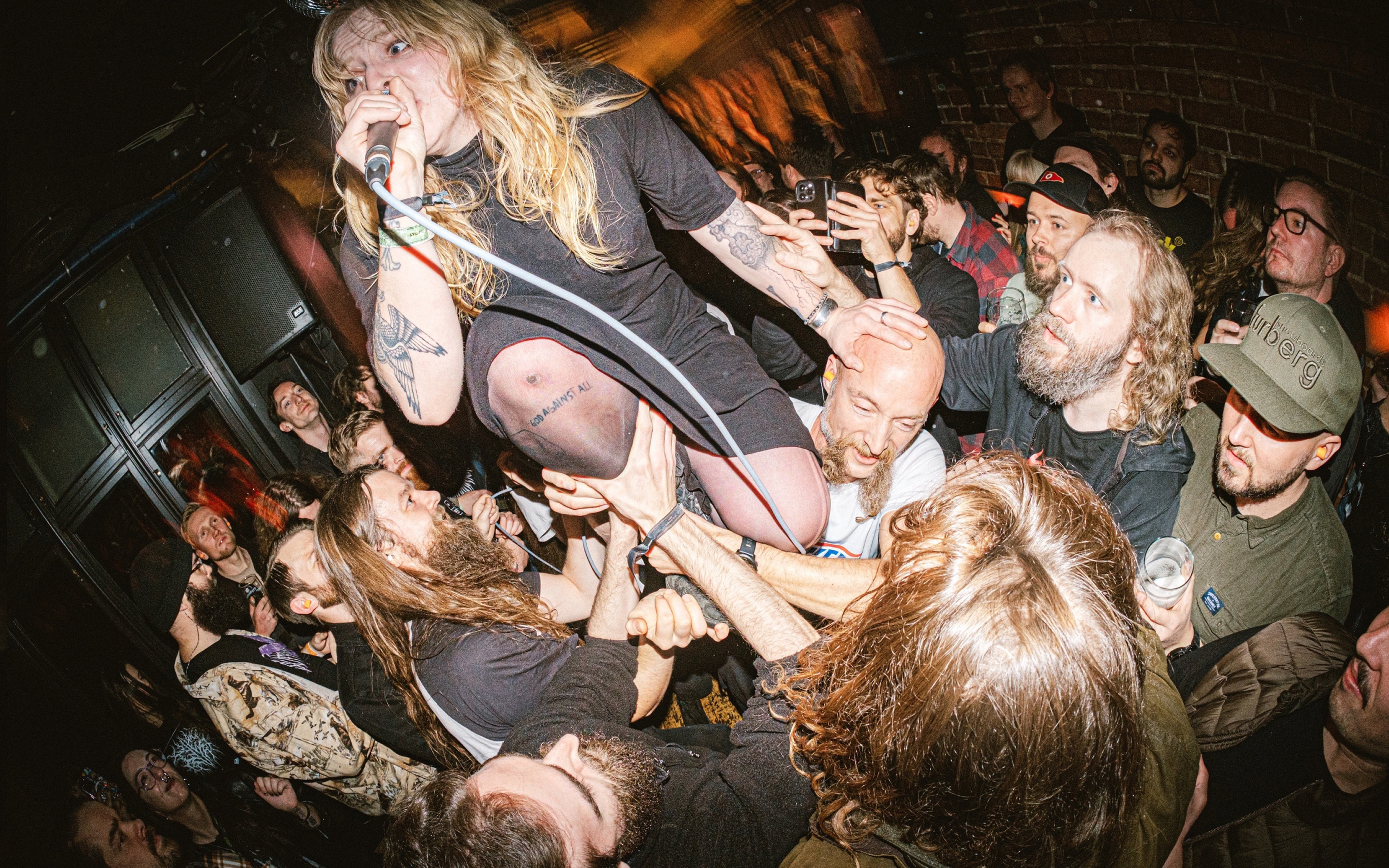 -Høstsabbat festival in 2024 set the bar for a packed floor show vibe. Selma was basically headwalking the entire set, smoke detectors hanging from the ceiling, no escape from the sweat or chaos. I had even busted my elbow the night before while stagediving, but managed to make it through the set.